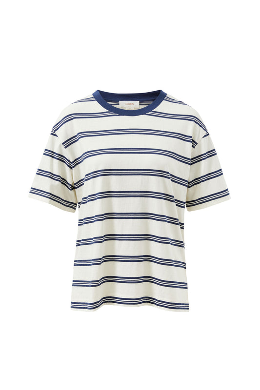 Stevie Slouchy Tee in Milk/Navy Heritage Stripe