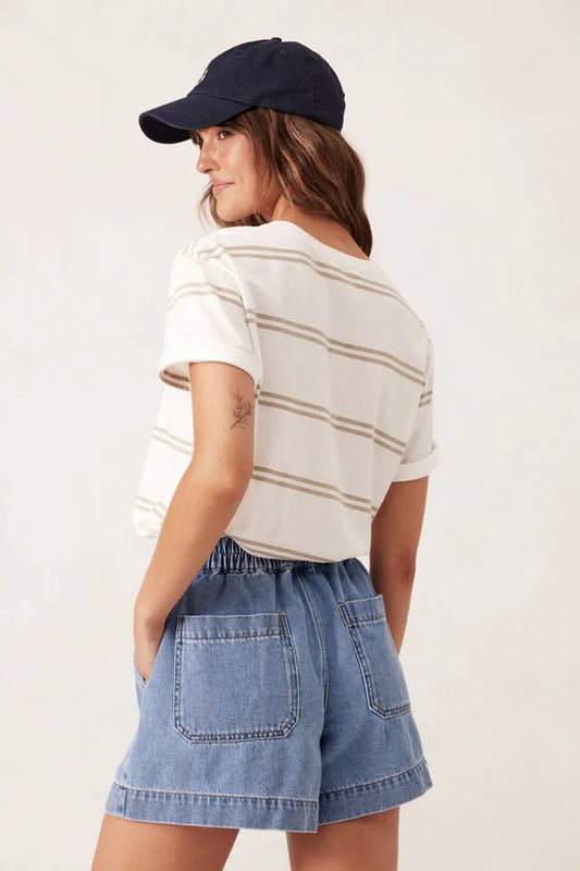 Ceres Life EXTENDED SHOULDER TEE/WHITE/FRENCH NAVY STRIPE