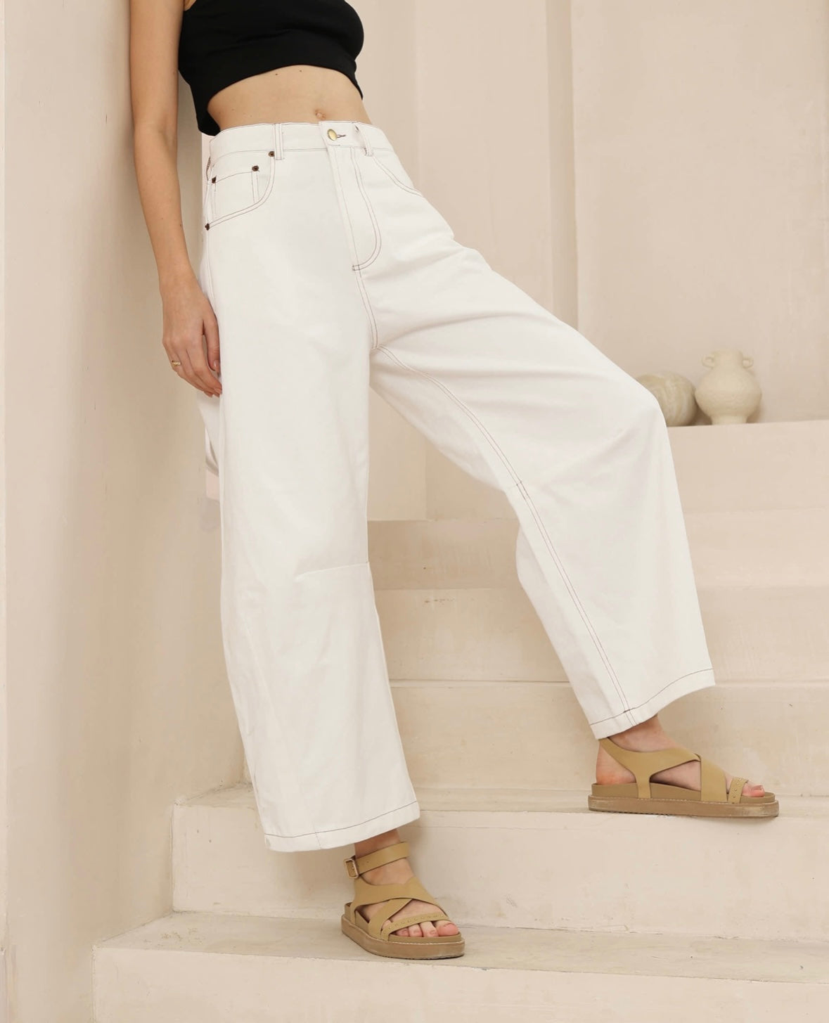 Barrel Leg Jeans in White