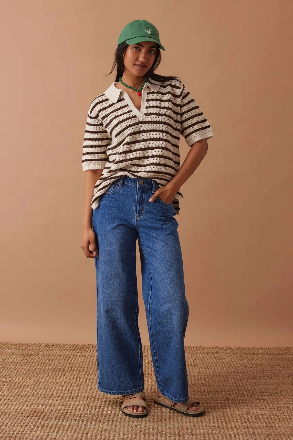 Meet our Molly Textured Stripe Short Sleeve Knit Tunic. Made from 100% Organic Cotton, its textured knit stitch adds a touch of understated style. Featuring a relaxed slouchy fit, side splits, and an open placket for easy styling. Pair back with the Molly Textured Knit short for an easy outfit or your favourite denim for elevated styling.