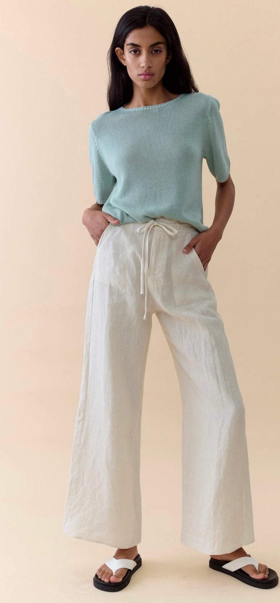 The perfect knit tee is here and she's absolutely gorgeous in white! A lightweight knit tee perfect to dress up or down and looks fabulous with the Jude linen pants or even some denim!