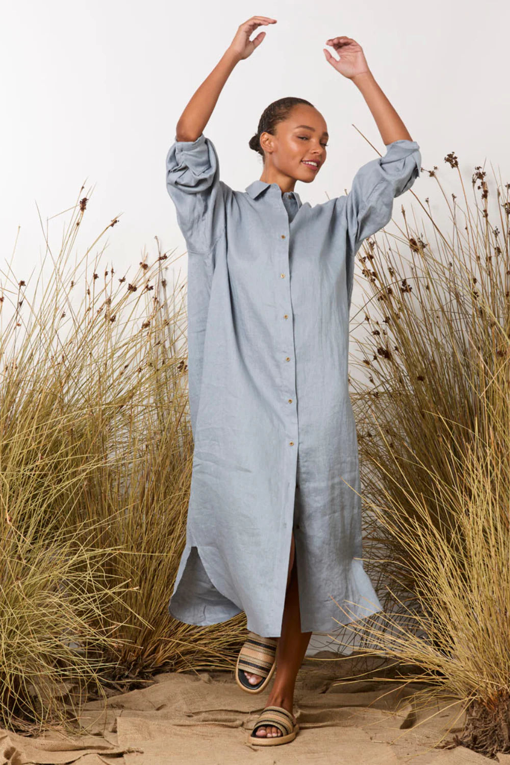 The Potter Dress is a refined take on everyday dressing, blending relaxed tailoring with a feminine edge. Featuring a belted waist and button-through front, it offers a flattering silhouette that can be styled effortlessly for both casual and polished occasions. Its lightweight fabrication and side splits bring ease and movement, making it the perfect trans-seasonal piece.