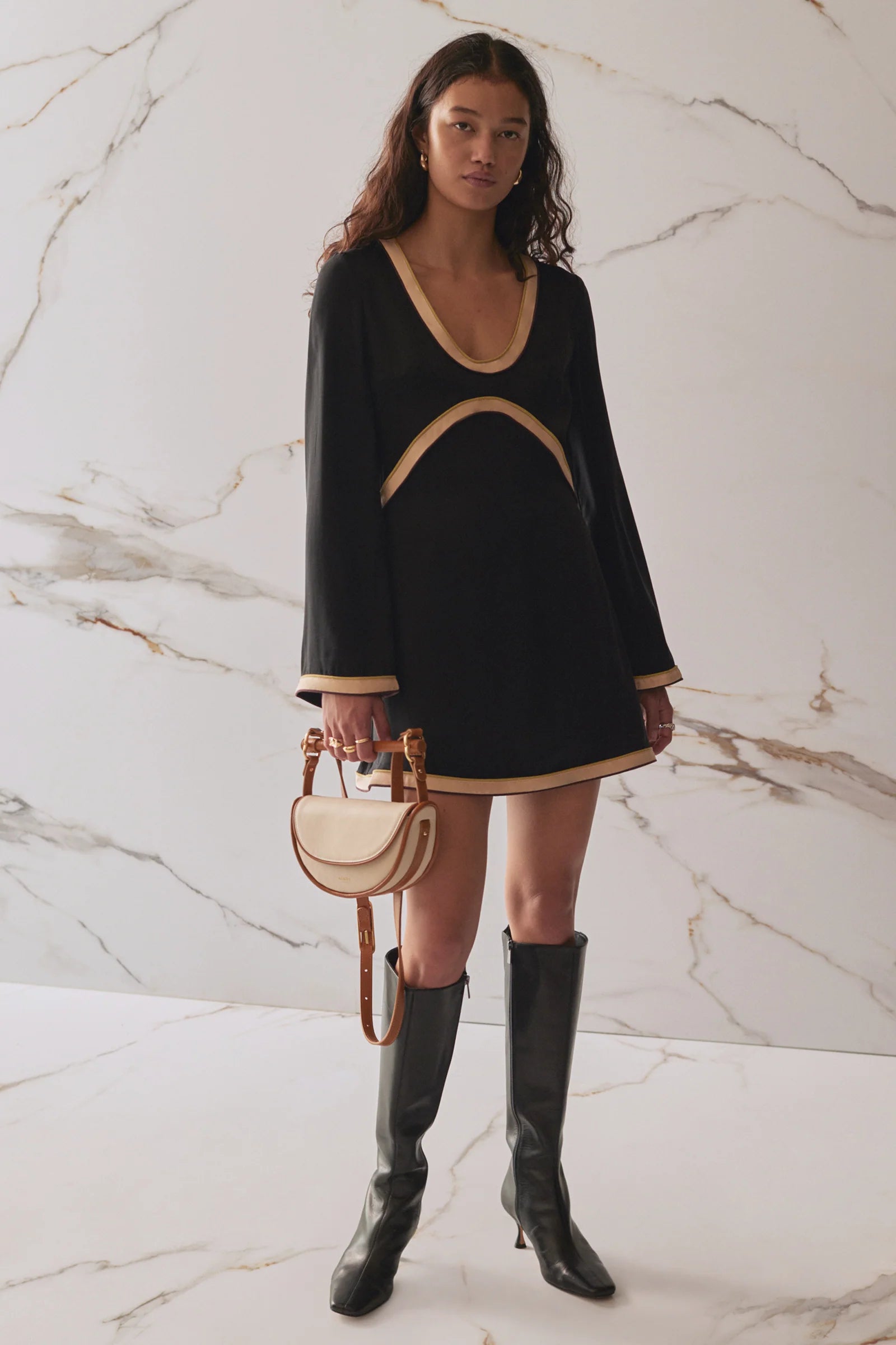 Our Luella Dress is a flattering mini like no other. Designed to contour the body with its curved binding lines, this dress gorgeously drapes into an a-line silhouette. Layer the Luella with your favourite Trench Coat and pair with some heels for a date night look.